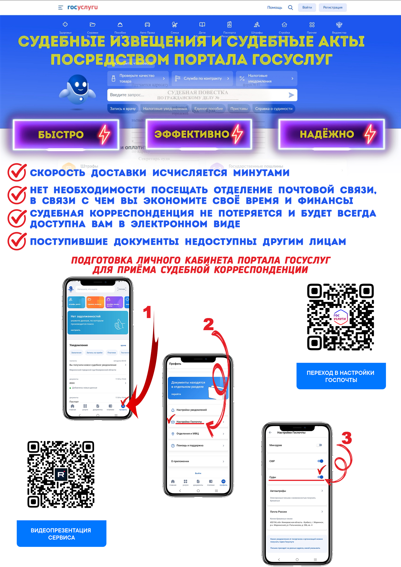 Получение судебной корреспонденции через Госуслуги